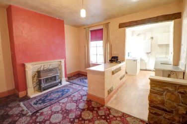 Rear Lounge - 4.4m x 4.2m Single glazed window to the rear, radiator, under stairs storage cupboard, gas fire and open to the kitchen.