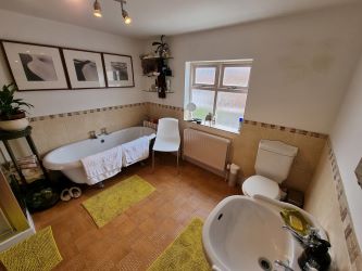 The first floor is split-level, with the bathroom being on the first level, with three bedrooms on the next level. Bedrooms one and two are both good size double bedrooms with one to the front and one to the rear. Bedroom three is a single to the front elevation and would serve equally well as an office or nursery.