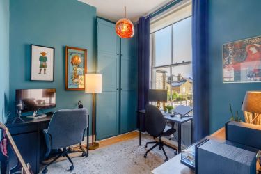 High ceilings, open plan reception / dining room leading to fitted kitchen area, master bedroom with fitted wardrobes, modern bathroom, second double bedroom with fitted wardrobes.