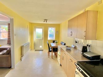 Kitchen Diner: (2.561m x 6.535m max) A welcoming bright and spacious room. The kitchen has matching wall and base units, roll top work-surfaces, sink with drainer, cooker with extractor fan and light, room for a standing fridge freezer, room and plumbing for a dishwasher, wall mounted combination boiler, front window rear window and rear external door.