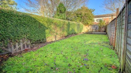 The garden continues to a vast open lawn. An unusual feature here is the free-standing garage with up-and-over door in the rear garden, as there is no vehicular access and therefore makes for an excellent storage room or workshop. A raised decking area at the far end completes the garden and there is wooden fencing and a hedgerow to the boundaries to ensure privacy.