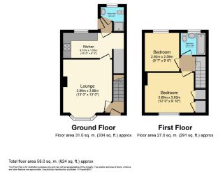 This two bedroom starter home is approached via a paved driveway with lawn and a path leading to the door to entrance hallway. The hallway has stairs to the first floor and a door to the lounge, the lounge is a good size and has a feature bow window to front. The fitted kitchen breakfast room measures 15' in length, has space for a breakfast table and a handy under stairs pantry. Beyond the kitchen is the rear lobby with a ground floor shower room and access to the rear garden. The garden is a great size being mostly laid to lawn with a paved patio area. The first floor has two bedrooms (master with built in wardrobes) and a house bathroom.