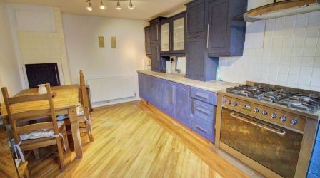 Immediately of note in the kitchen is the stunning wood effect flooring which is laid across the impressive floor space that allows for a family dining table. The suite is mainly fitted to the front and right walls, having plenty of units and drawers with a range oven positioned in between that will be included as part of the sale. There are also clear spaces for the washing machine and fridge freezer. The lounge is a large open room that could also allow for dining if desired and has a wide set of sliding double glazed doors leading out to the rear decking.