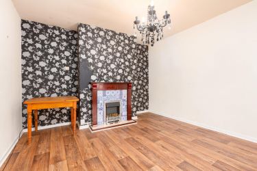 Lounge - uPVC double glazed bay window to the front, radiator, wood effect flooring, television point and fire with decorative surround.