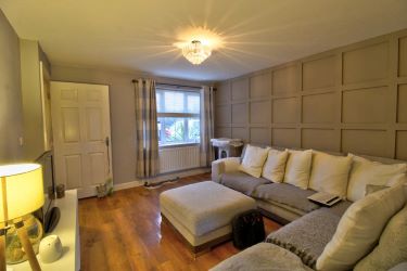 A modern three bedroom town house ideally suited to first time buyer, investor and growing family alike . Comprising of front entrance hall with Karndean flooring, access to downstairs wc.,and stairway to the first floor. The hallway leads into the neutrally decorated lounge with feature papered wall, Karndean flooring and under stairs storage cupboard. The modern fitted kitchen and dining area comprises a range of wall and base units, space for washing machine and fridge/freezer, gloss black brick tiling to the splashbacks and integrated electric oven and four ring gas hob, Tile effect Karndean flooring, French style doors leading to the fully enclosed rear garden.