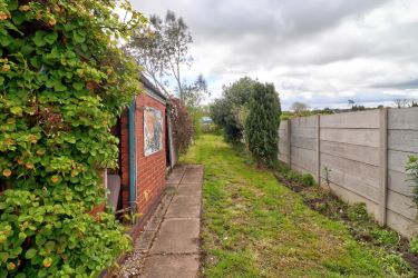 To rear, the property offers a patio area and a generously sized lawned garden with enclosed fencing and brick built outhouse and to front, the property benefits from ample off street parking.