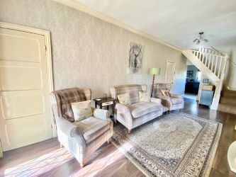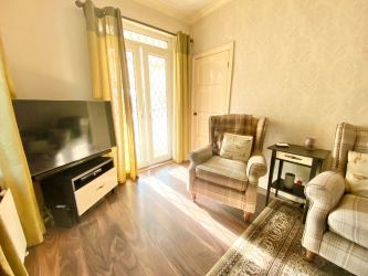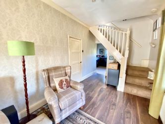 Two triple glazed windows to the side, two radiators, plug points and a tv point. Feature electric living flame effect fire in a modern surround, laminate floor, coved ceiling and turning staircase leads to the first floor.