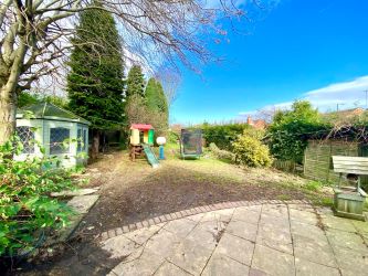 Block paved driveway to the side with double wrought iron gates. Lawned area to the front with a retaining brick wall. The rear garden is a very good size garden, very well established, with trees, conifer hedging, a variety of trees, shrubs and a large patio sitting area. In addition, there are two large summer houses and a timber garden shed.