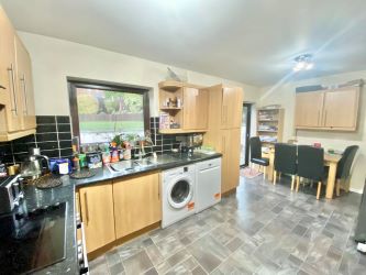 Composite entrance door, radiator, plug points, laminate floor, double glazed window to the rear. Fitted with a range of base and eye level units with fitted contrasting worktop space and inset 1.5 stainless steel sink unit and mixer tap. Built-in hob with extractor hood over and fitted electric oven and grill. Tiled surround, plumbing and space for a washing machine, dishwasher and space for a fridge freezer. The breakfast/dining area has patio doors leading to the rear garden and patio sitting area.
