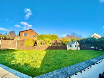The rear garden is landscaped, lawned features a retaining wall area with a veranda style patio sitting area, sidewalk footpath to the top level of the garden providing panoramic views. Outside cold water tap, evening lighting, gated access to both sides. A side footpath leading to the driveway provides off-street parking which intern leads to the garage.