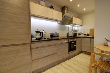 Open-plan living kitchen area - 14.00 x 15.0 Double glazed window to front and side, radiator, range of modern kitchen units, extractor hood, splashback, fitted hob, fitted oven, LED lighting, integrated fridge/freezer, 1/4 single drainer sink, hard flooring.