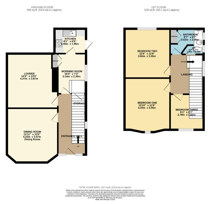 The first floor boasts three well-appointed bedrooms, a family bathroom and separate WC.