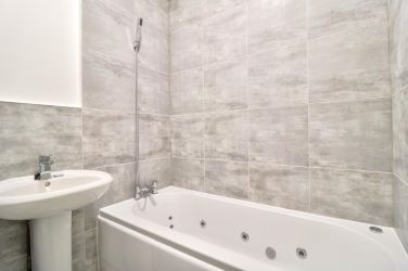 Bathroom - A three piece suite comprising of low flush WC, pedestal wash hand basin and panelled 'Jacuzzi' style bath with mains fed shower over. Tiled flooring, heated chrome towel radiator and double glazed opaque window to the rear.