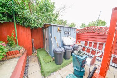 This property offers an enclosed garden laid to patio, Outside tap, Storage shed and is surrounded by a range of plants and shrubs.