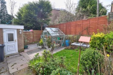 With toilet and washbasin. Partly tiled. Frosted UPVC window overlooking the rear garden. Laminate flooring.
