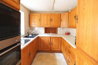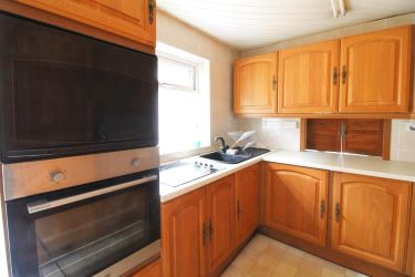 Kitchen - 11'4 x 7'8 - Fitted with matching wall and base units with worksurfaces over incorporating a four ring electric hob and a single drainer sink with a mixer tap. Built in oven, integrated fridge and freezer, UPVC window and door to the side.