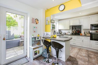 When entering this property, you are welcomed into a light spacious hallway with a door leading into the living room. The living room is bright and airy, neutrally decorated with a feature fireplace being a lovely focal point. A large double-glazed window looks out to the front of the property and allows lots of natural light in and creates a fabulous atmosphere within this space. The 'L' shaped room allows for a separate area dedicated to dining with a window looking out over the rear garden. A door leads to the kitchen, stylishly laid out with ample countertop space with an abundance of drawers and cupboards giving you all the storage you will need, A window and back door look out to the private garden. The garage can be accessed via the kitchen, handy to use as an extension of the kitchen if you require a second freezer or to house a tumble dryer, Fabulous potential if you did want to develop further.
