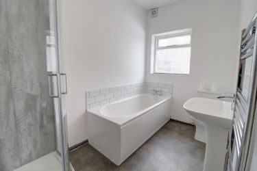 Bathroom - Spacious bathroom housing a four piece suite comprising toilet, sink, bath and shower cubicle, tiled to complement, radiator and uPVC double glazed window to the rear. 3.2m x 1.5m