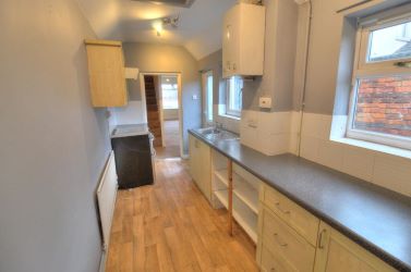 The galley kitchen is a generous size, with a range of wall and floor units, with integrated sink and space for freestanding appliances. There is a door which allows access to the courtyard garden and side access. Leading off from the kitchen you have a laundry/utility space which is always handy, before you come to the house bathroom, with bath, sink and WC and a generous size.