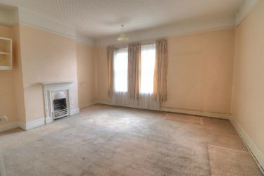 Timber Window to Front, Coved Ceiling, Fireplace and Door to Hall.