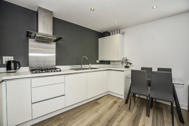 Kitchen: Karndean floor, full range of modern base and wall units, integrated oven and hob, extractor, integrated microwave, integrated dishwasher and integrated washer/dryer, integrated fridge freezer, spotlights, open to open plan living space